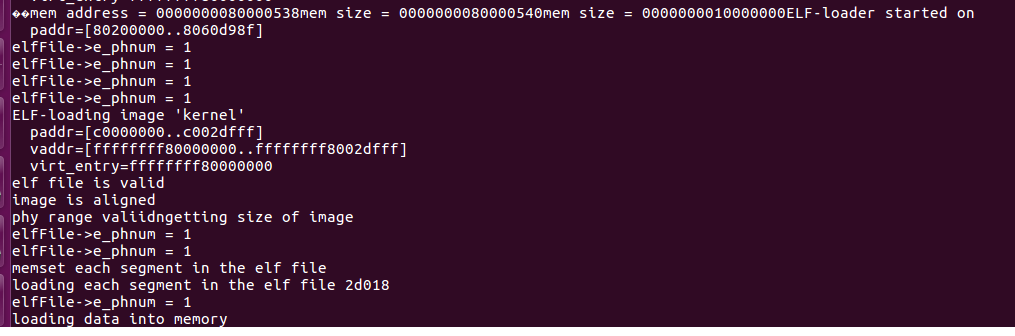 Hi, I am porting SEL4 on RISCV FPGA. I am stuck midway in the kernel elf loader. The function stuck is memcpy. I have added prints and I am not progressing after the last memcpy call in unpack_elf_to_paddr(). All kinds of input appreciated. Function under review: *static void unpack_elf_to_paddr(void *elf, paddr_t dest_paddr)* /* Parse size/length headers. */ dest_vaddr = elf_getProgramHeaderVaddr(elf, i); data_size = elf_getProgramHeaderFileSize(elf, i); data_offset = elf_getProgramHeaderOffset(elf, i); /* Load data into memory. */ * memcpy((char *)dest_vaddr + phys_virt_offset,* * (char *)elf + data_offset, data_size);* * printf("loaded data into memory \n"); -----> Stuck Here !* } } *Can anyone give me a clue on whatsoever to check here ? **It worked perfectly in spike simulation.* *RISCV FPGA configuration* - It supports IMAFD. It has already booted linux. Kernel is loaded at physical address 80 million. -- regards, Sathya